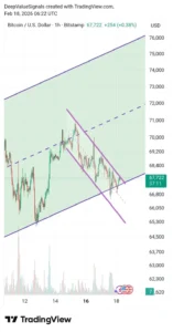 Dari sisi teknikal jangka pendek, Bitcoin disebut berada tepat di area channel support dan tertekan dalam pola falling wedge. Jika harga tidak segera bergerak naik dari zona ini, risiko tekanan lanjutan masih terbuka.